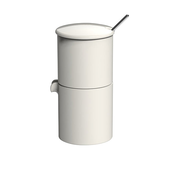 The Sugar and Creamer set compliments the contemporary aesthetics of the Bond coffee cups and is a perfect addition to your Bond collection. Being able to stack the set not only adds a visual twist when serving your favourite coffee but also allows them to be space saving too. Includes a matching stainless steel spoon.