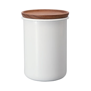 Hario Bona Enamel Tea & Coffee Canister - 800ml Available in : White 800ml W10.2 x D10.2 x H14.3cm Materials: Enamel Wood Silicon rubber sea...